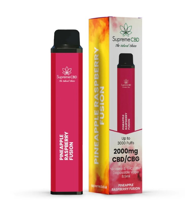 Introducing Supreme CBD’s Pineapple Raspberry Fusion Disposable CBD Vape with 2000 mg of CBD Isolate.