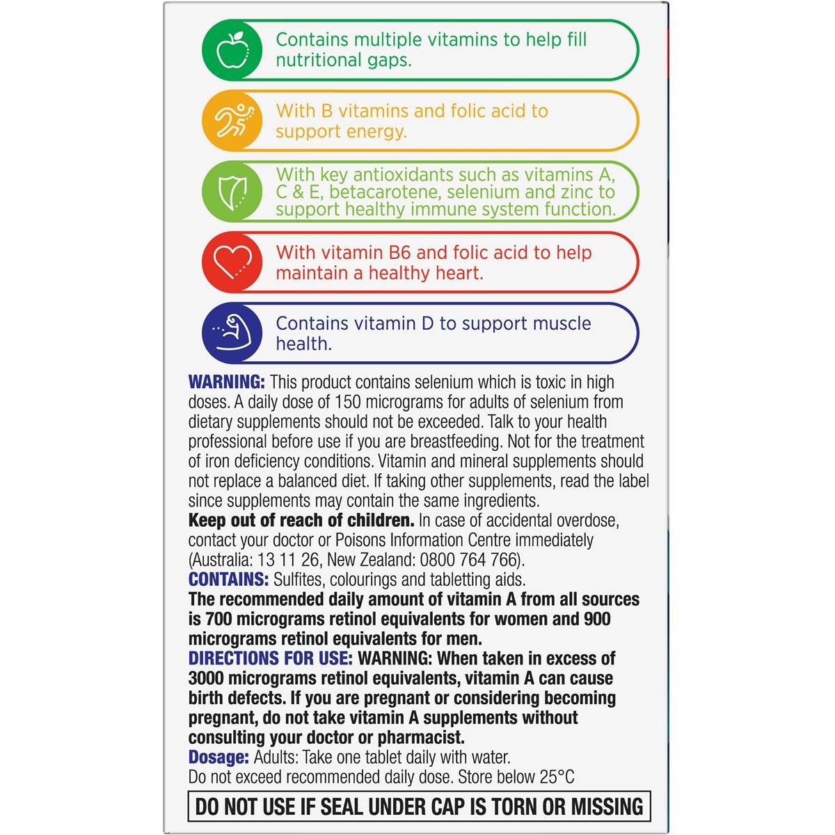 Centrum for Men is a once-a-day multivitamin. Centrum For Men with adjusted levels of vitamins* to support muscle health and a healthy heart. It contains vitamin D to support muscle health plus vitamin B6 and folic acid to help maintain a healthy heart.