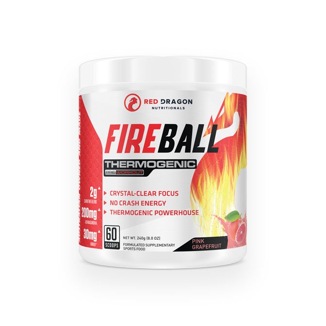 Red Dragon brings you their flaming hot Fireball Fat burner! Fireball is not only delicious, but it’ll let you bring the heat into your workouts and melt the fat away. It is clinically designed and dosed to mobilize fat into the mitochondria to be used for energy and improve your overall mood and cognitive performance. Fireball will give you a spike of smooth, natural energy from 100mg of L-Theanine and 125mg of Green Coffee Bean Extract. This is complemented with 100mg of Ashwaghanda and L-Theanine to reduce your cortisol and 500mg of L-Tyrosine which acts as a nootropic to enhance your brain function and stress response.