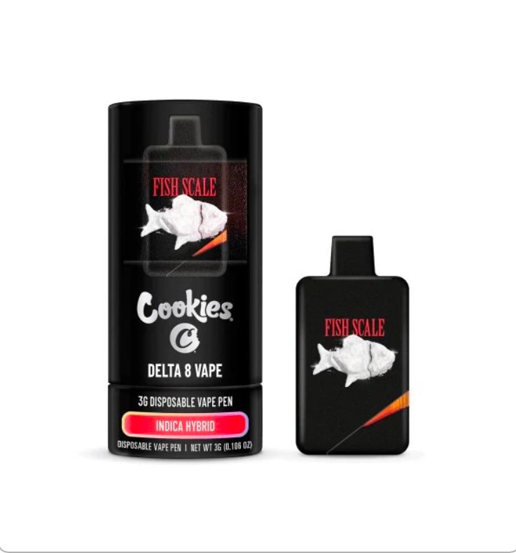 Check out the Fish Scale (Indica Hybrid) Cookies Delta 8 Disposable, offering 3 grams of delta 8 cannabinoids with terpenes for a delicious full-bodied vape to uplift the senses.